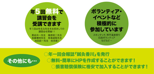 鍼灸師の免許を保有するものであって、香川県にて勤務あるいは香川県において開業もしくは在住するもの。