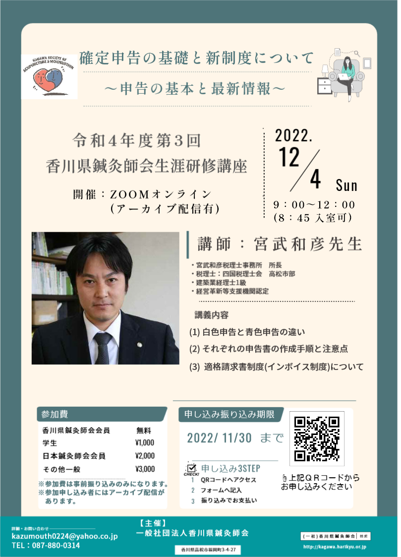 | 12月4日 | 「確定申告の基礎と新制度について~申告の基本と最新情報~」 講師 宮武和彦税理士事務所 所長 宮武和彦 先生 |