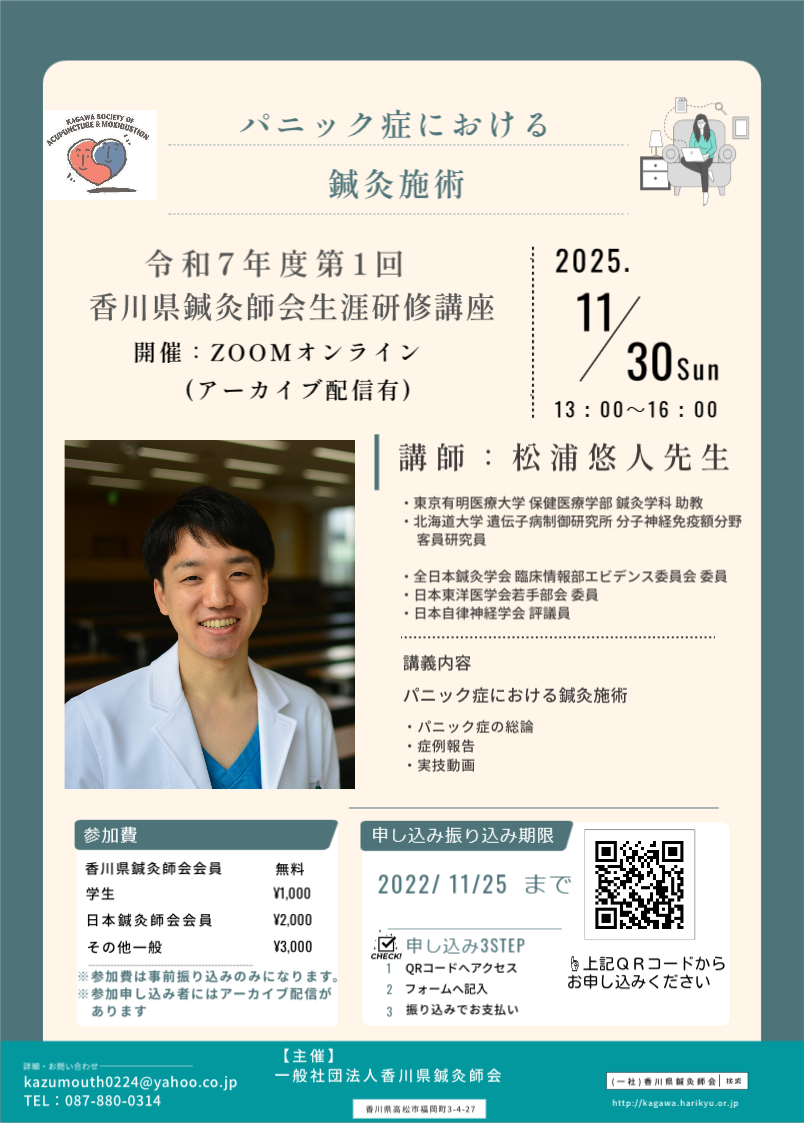 令和7年度香川県鍼灸師会研修会「パニック症における鍼灸施術」